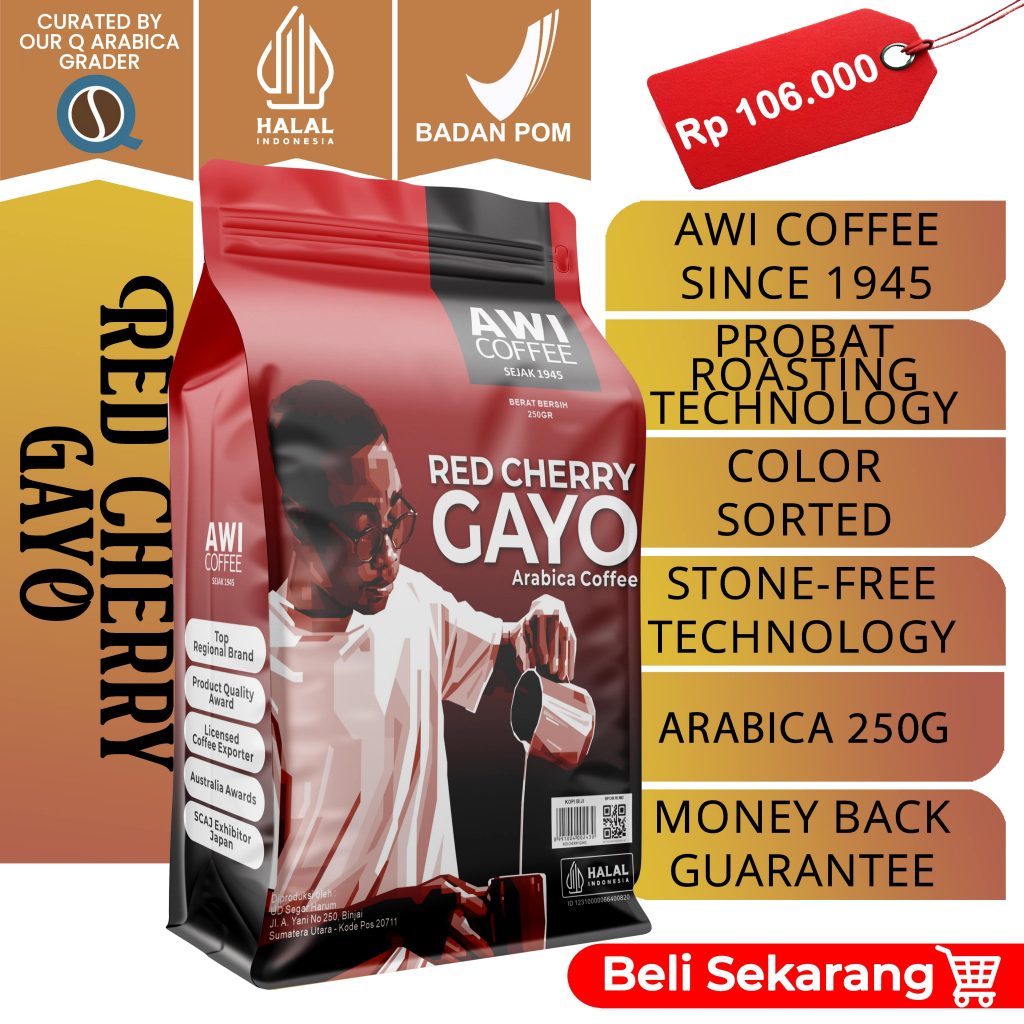 AWI COFFEE RED CHERRY GAYO adalah salah satu kopi bestselling kami. Selain penikmat kopi home brewer, cafe-cafe juga banyak memakai kopi ini untuk manual brew, espresso, latte dll.